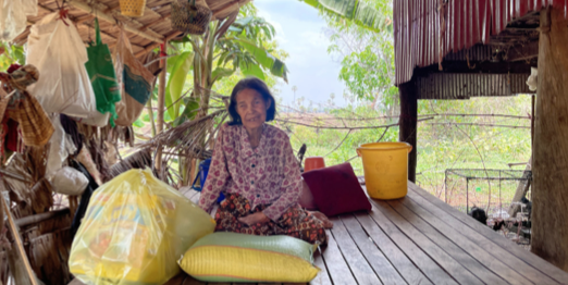 We have provided food parcels to Grandma Choub Hoem, a 76-year-old. She lives alone. Her children have families of their own. She manages daily life independently. Although she usually cooks for herself, there are times when she is unable to do so due to her age and health. During those times, her grandson provides meals and cares for her. ”