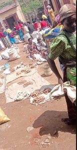 February Uganda #14. Silviano buys Irish potatoes, bread, and books for the village.