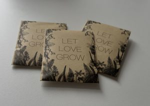 We bought 1kg of wildflower seed, enough for a square kilometre of wildflowers. Then separated it into hundreds of small envelopes, attached to a card welcoming spring and inviting people to plant the seeds, or scatter them on a grass verse, or in a pot.